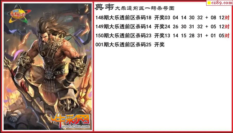 大乐透001期典韦前区一码杀号图